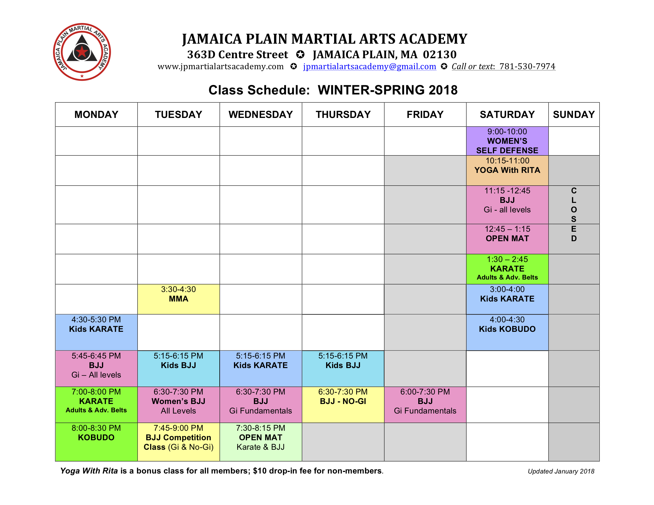 We’ve made a few tweaks to the class schedule for Winter/Spring 2018.