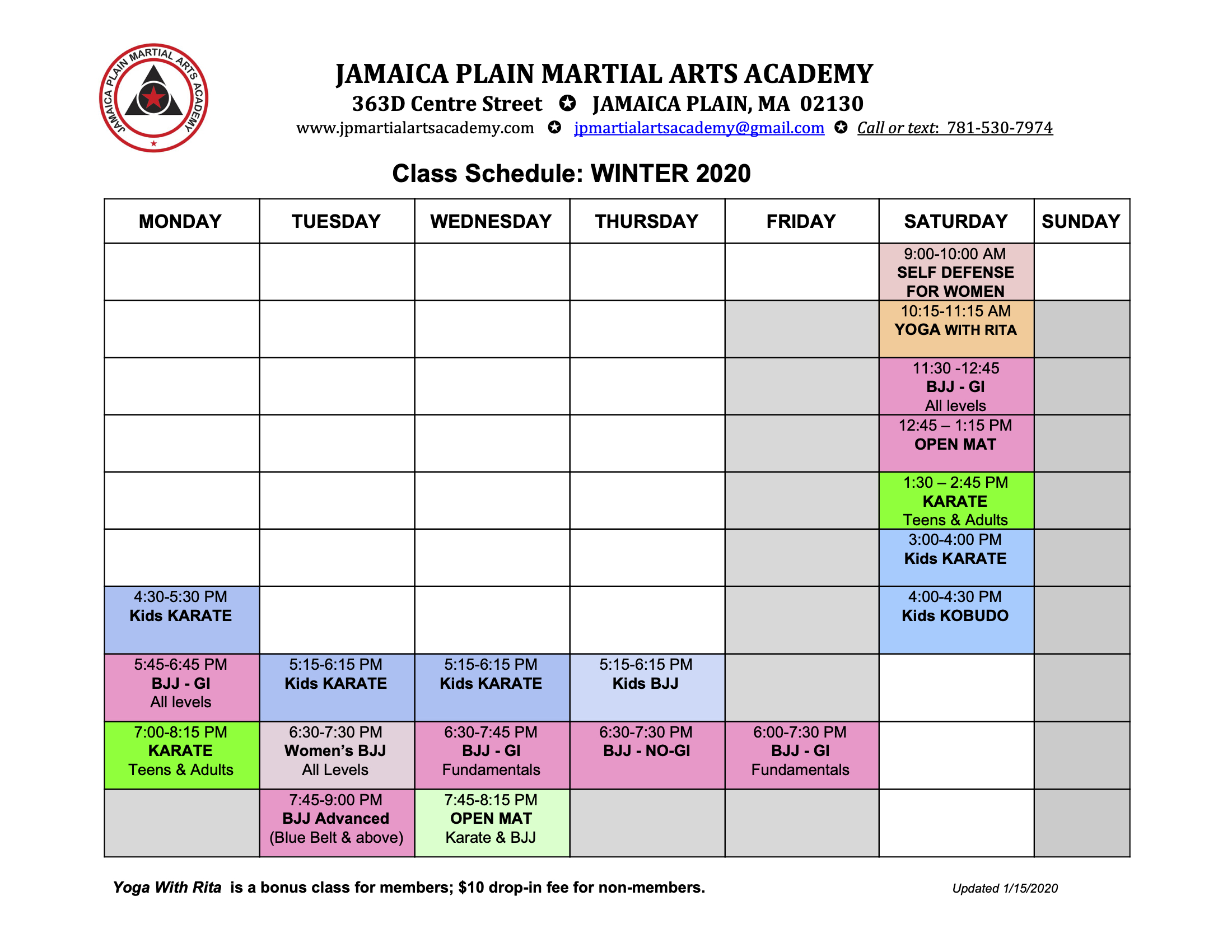 NEWS + UPDATES Winter 2020 Schedule January 17, 2020 jpmartialartsacademy Click Image to Enlarge Related
