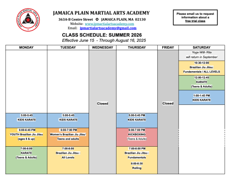 NEWS + UPDATES SUMMER 2026 SCHEDULE + MINI-CAMP INFORMATION March 24, 2026 jpmartialartsacademy Related