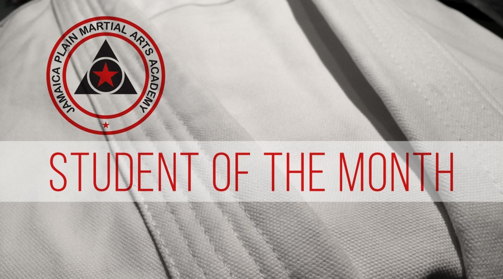 This month’s Student of the Month, Twyla Schran, is 16 years old, and a Junior at Meridian Academy here in Jamaica Plain. She earned her Brazilian Jiu-Jitsu Blue Belt this summer at the age of 16 – the youngest age a student is allowed to earn a Blue Belt, by IBJJF rules. Twyla also trains in Karate at another dojo, where she is a Junior Black Belt (the black belt for those who go through the kids program; the next step is the adult Brown Belt).