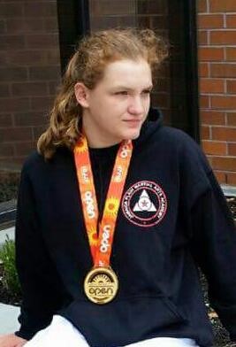 Twyla has been with us since the early days of our school. I would often see her training with her mother Elin in our BJJ classes with our previous instructor. I could tell that Twyla was serious, and I also learned that she has a black belt in Karate at another dojo. I have had the pleasure of teaching her BJJ for the last 10 months or so, and I have learned what a strong competitor she is (and also how flexible and physically strong she is!). This past summer, Twyla turned 16 and we were able to award her Blue Belt. As a Blue Belt, Twyla has competed in a NAGA competition and the IBJJF Boston Open, winning second and first place respectively in her division. In the recent Boston Open tournament, Twyla submitted her opponent (who had traveled from Brazil for this competition and who was ranked 3rd in her division there). The submission took 43 seconds. Twyla is hard working, humble, and earnest. I enjoy rolling with her, and I look forward to helping her train for future events. Needless to say, she represents us well!