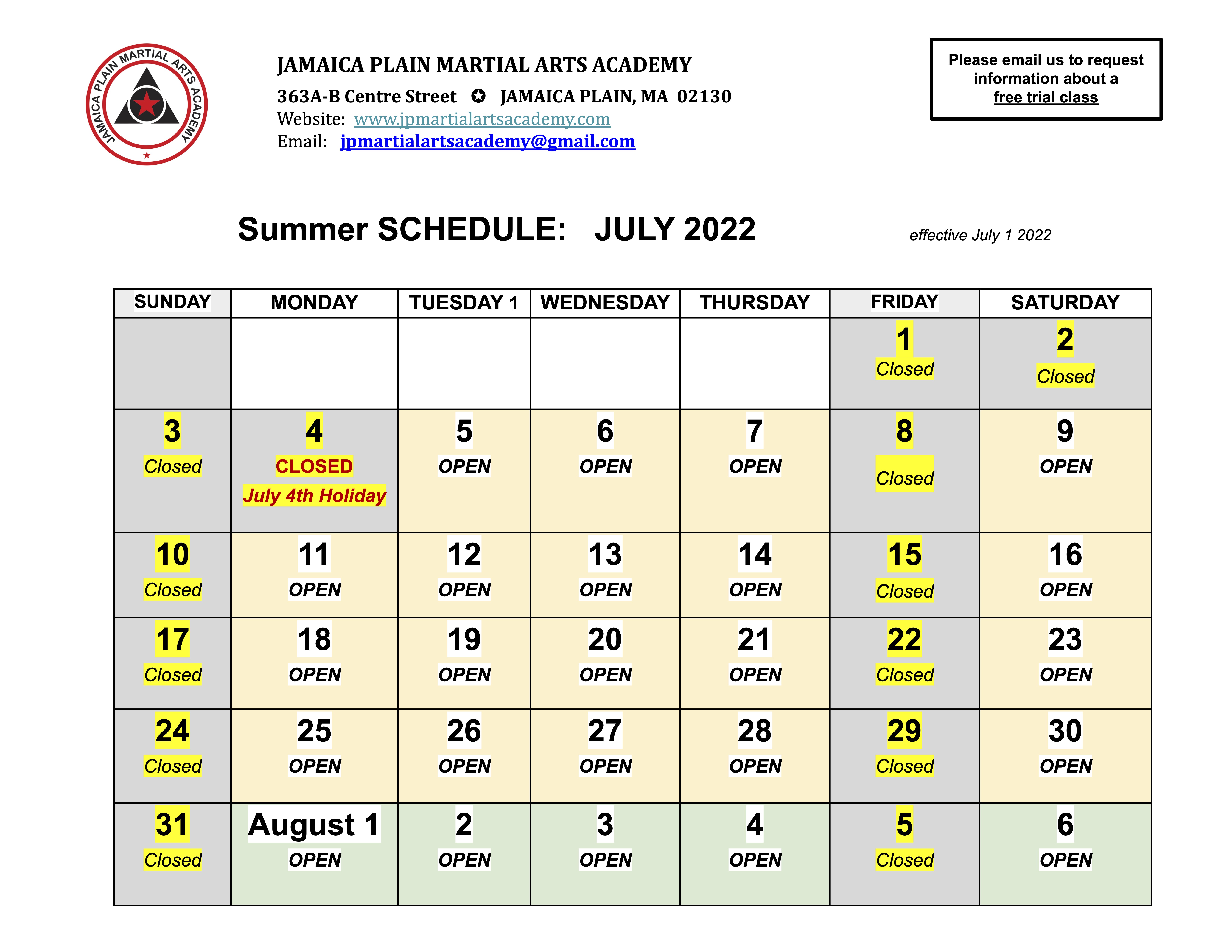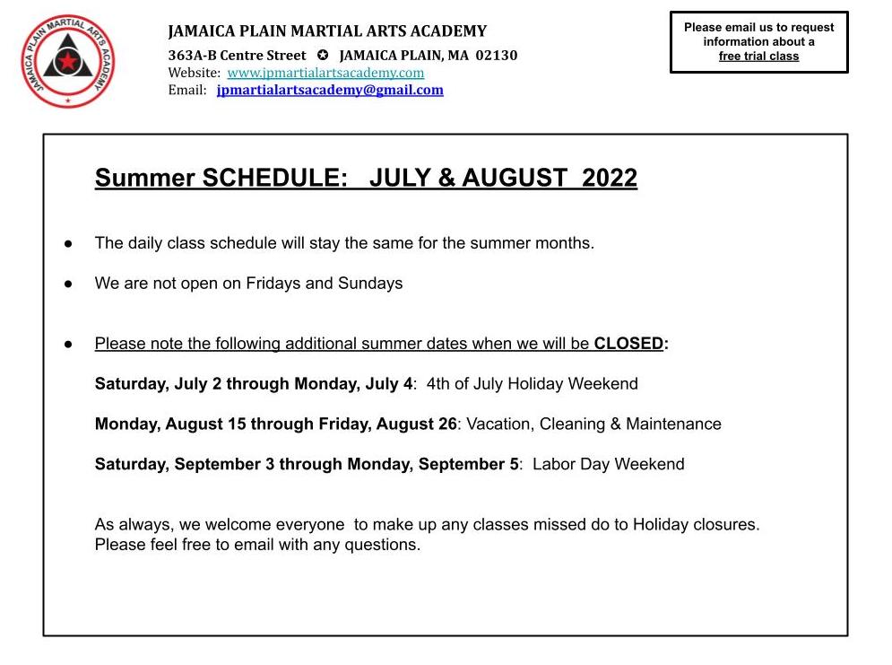 No Trial Classes in January – We are suspending all trial classes for the month of January.